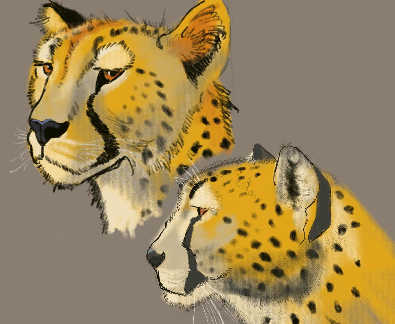 Cheetah heads sketched on iPad during the "How to draw big cats" course of Aaron Blaise.
